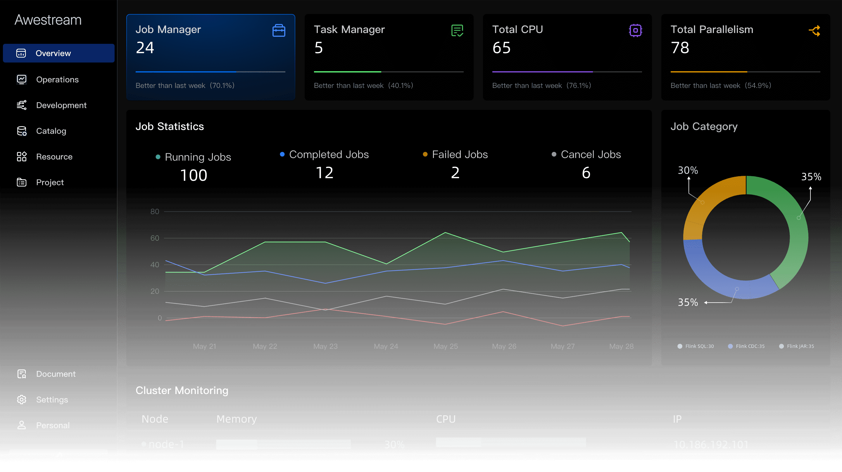 实时未来湖仓平台 「 Awestream® 」 是基于 Apache StreamPark™ 构建的新一代 Streaming Lakehouse 平台, 支持本地与云上灵活部署,提供高可靠、易用的实时计算和 Streaming Lakehouse 解决方案,助力企业实现高效的实时数据处理与分析。